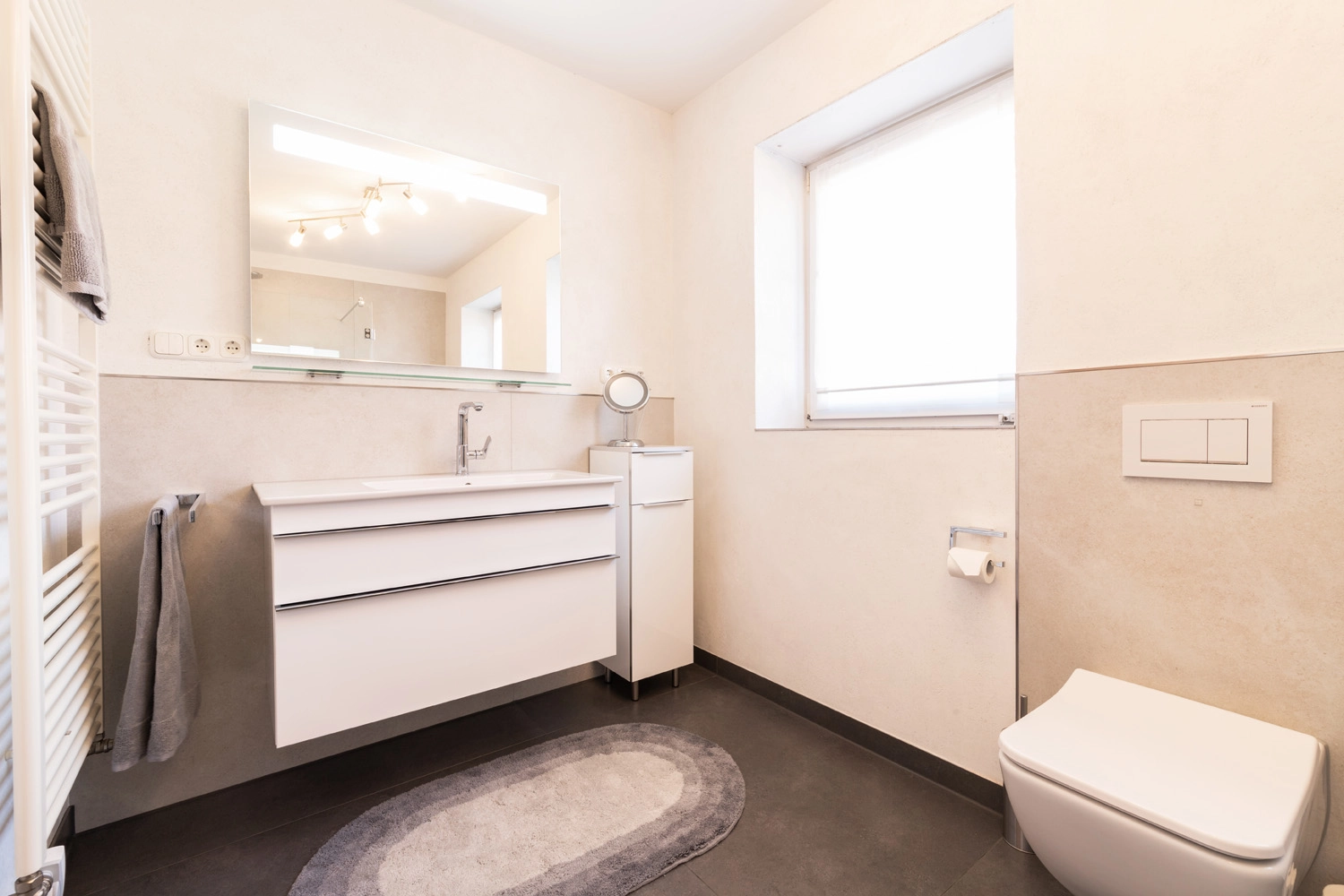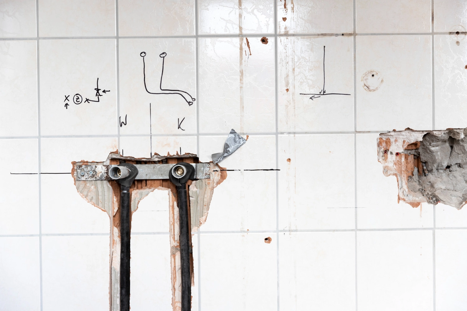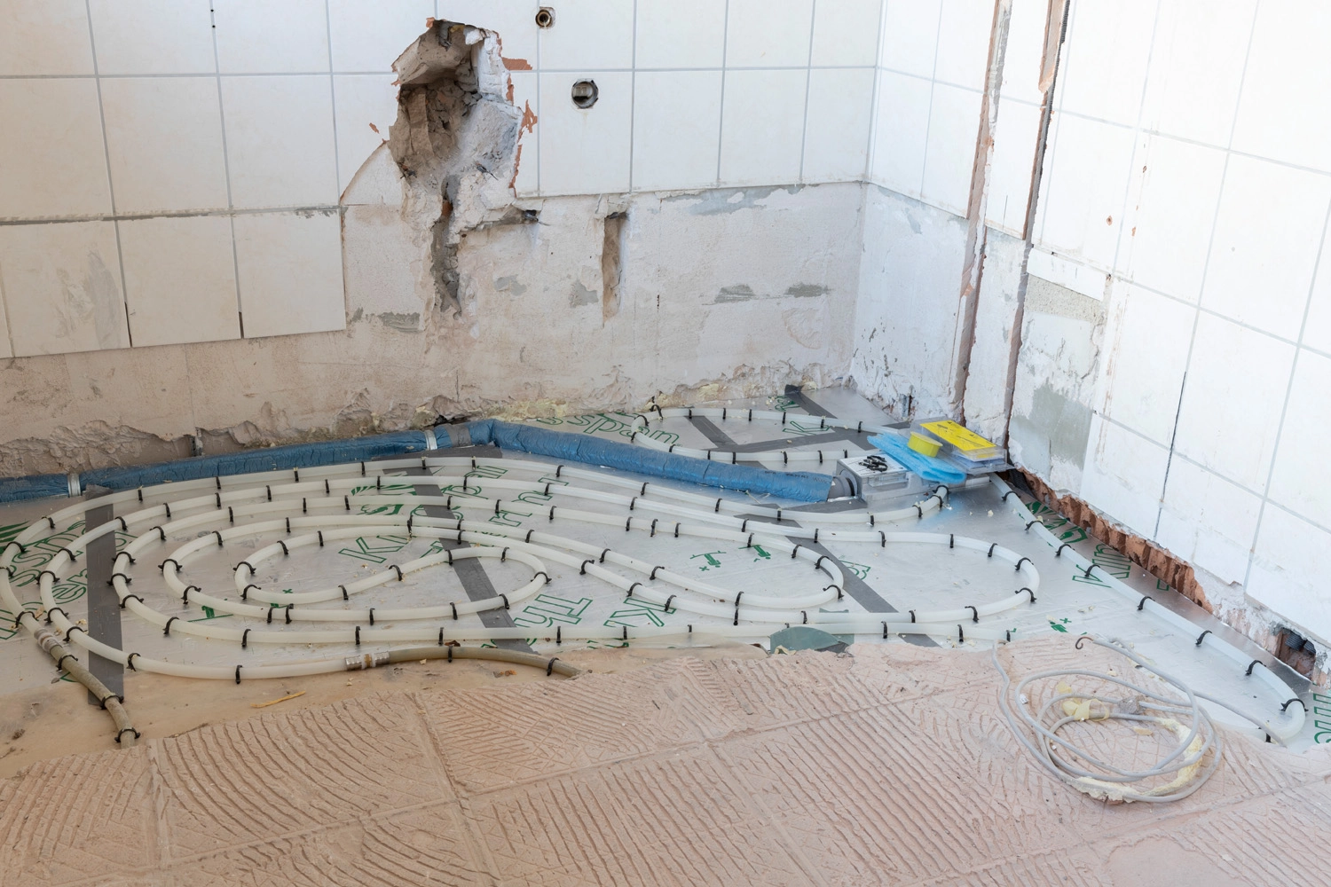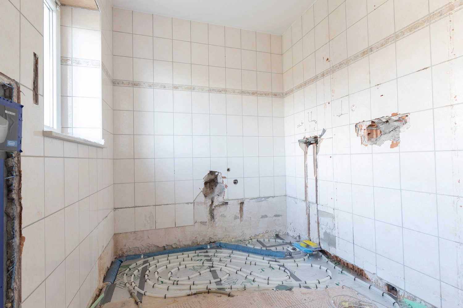 Im Folgenden sehen Sie exemplarische Bilder von den vier Phasen einer Badsanierung. Anhand der Bilder können Sie sich einen guten Eindruck über den Ablauf verschaffen. Für die Ausführungsarbeiten einer Badsanierung kalkulieren wir insgesamt 15 Arbeitstage. In diesem konkreten Fall waren die Arbeiten bereits nach 13 Arbeitstagen abgeschlossen.