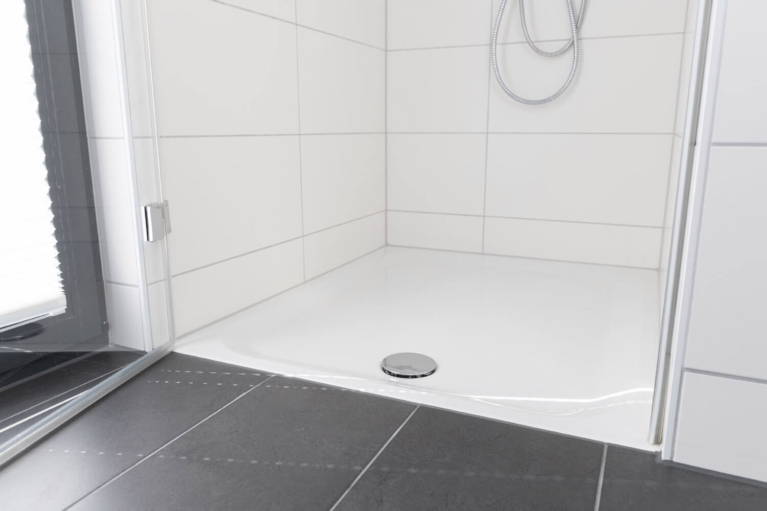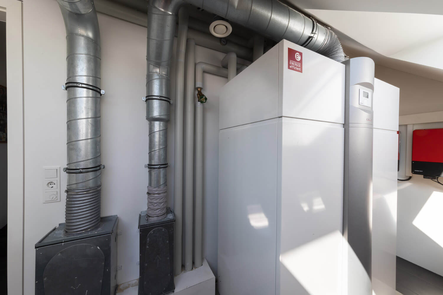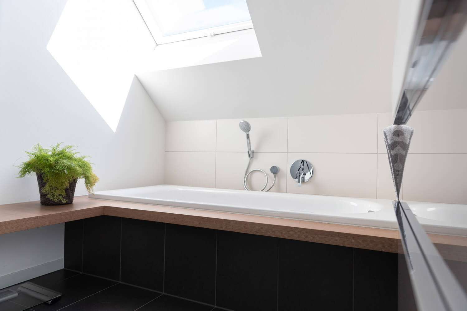 Funktionalität und Ästhetik gehen Hand in Hand. Das Bad ist ebenerdig, daher leicht zu reinigen. Durch die Lüftungsanlage entstehen keine Dämpfe, das Fenster muss nicht geöffnet werden, was natürlich besonders im Winter sehr angenehm ist.