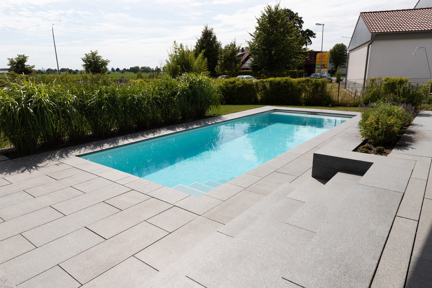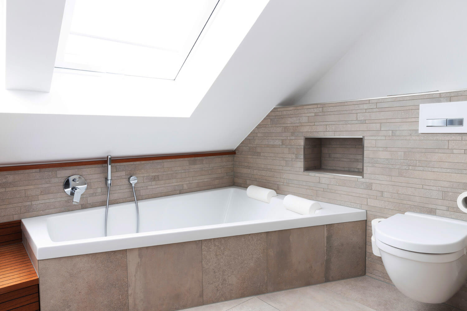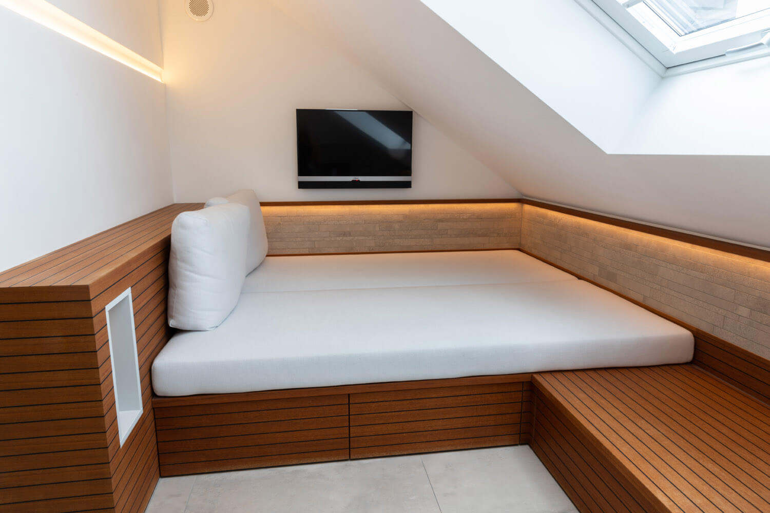 Der Pool im Garten ist ein echtes Highlight, aber nicht das einzige. Im neuen Bad ist eine Sauna integriert, gegenüber ein Whirlpool für zwei Personen unter die helle Dachschräge eingelassen. Strom kommt aus der eigenen Photovoltaik-Anlage, sie speist auch die neue Heizanlage im Haus.