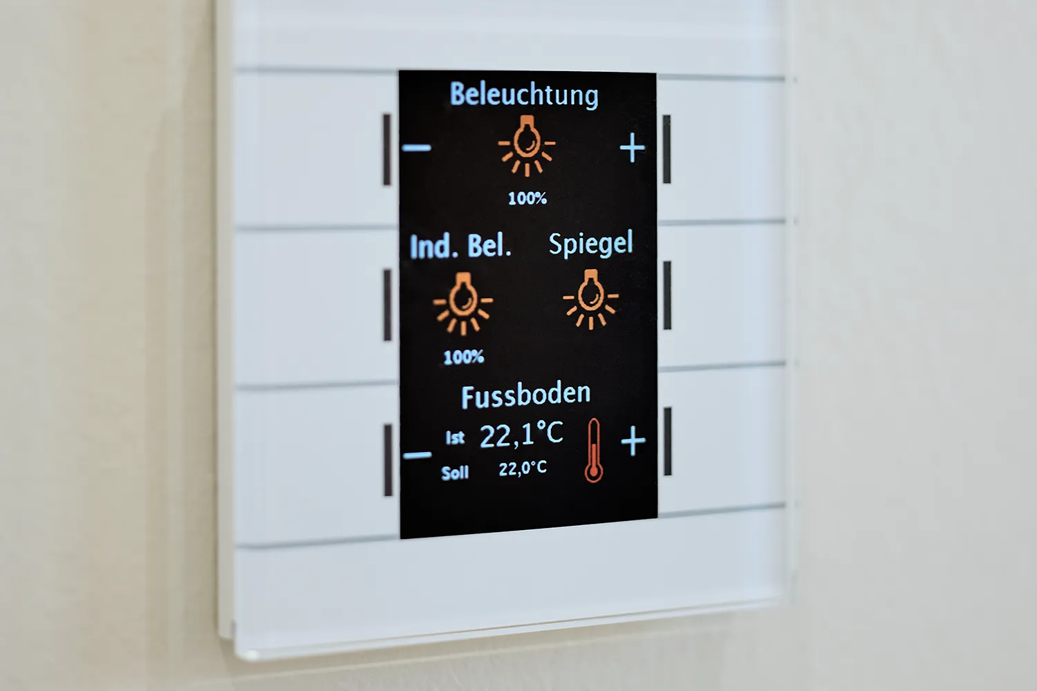 Dieses Objekt bietet ein Höchstmaß an Wohnkomfort dank innovativer und nachhaltiger Haustechnik. Die installierte Luft-/Wasser-Wärmepumpe nutzt die Außenluft als Wärmequelle und wandelt diese in Heizwärme um. Eine Lüftungsanlage mit Erdwärmekollektor garantiert eine optimale Frischluftversorgung rund um die Uhr. Dabei wird die je nach Jahreszeit vorgekühlte oder vorgewärmte Luft durch die Zuluftöffnungen im Bereich der Fenster kontrolliert umgewälzt und verteilt. Für eine angenehme Raumtemperatur im gesamten Haus sorgt das ganze Jahr über die integrierte Fußbodenheizung. Sie kann auch zur Kühlung genutzt werden und im Zusammenspiel mit der Außenverschattung das Wohnklima bei sommerlichen Temperaturen optimieren.